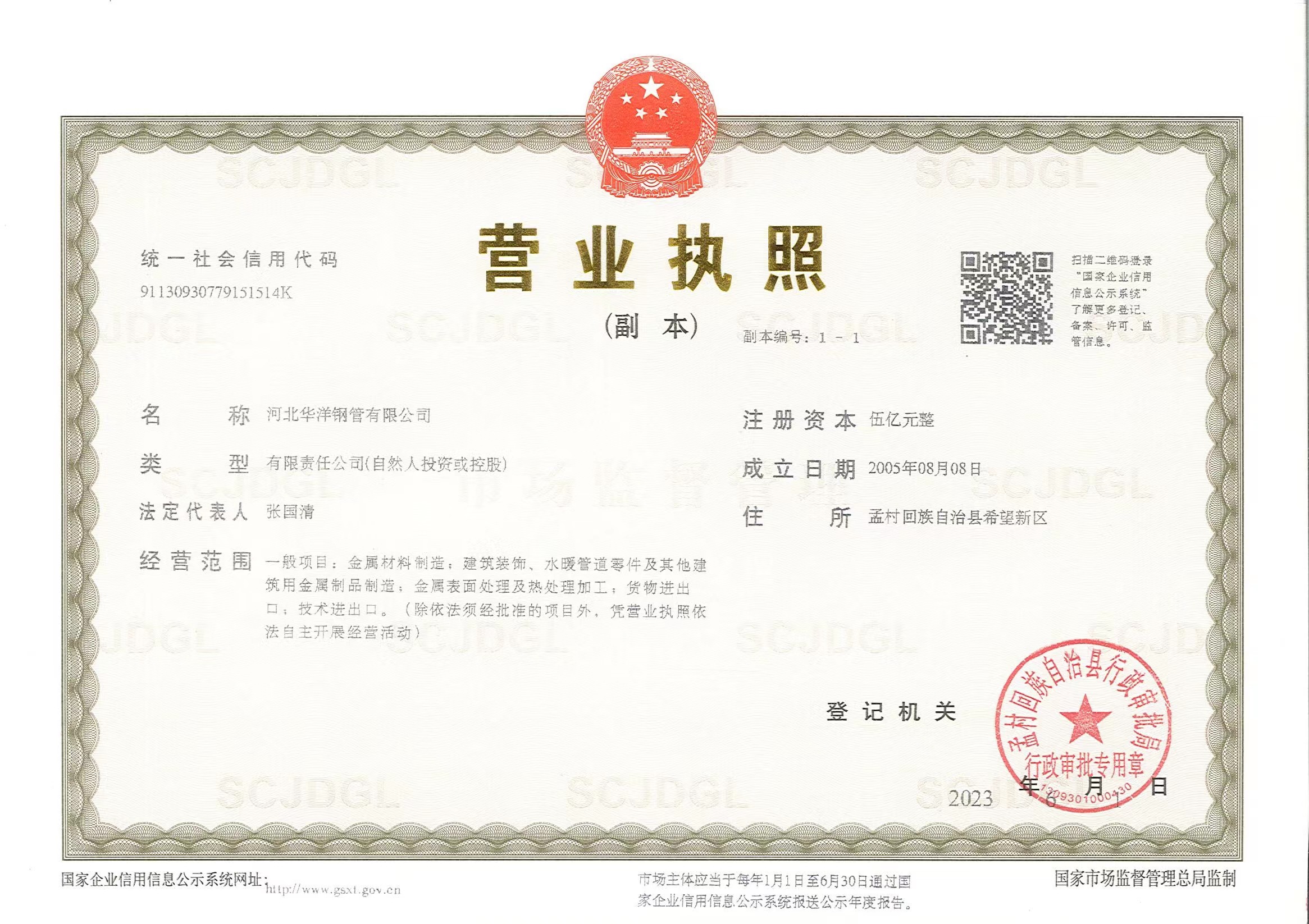 河北華洋鋼管有限公司公司創(chuàng)建于2005年,注冊(cè)資金5億元,公司占地面積1000余畝,固定資產(chǎn)12億元,年銷售收入近100億元,現(xiàn)有員工600余人。“華洋牌"高頻直焊鋼管被評(píng)為“河北省名牌產(chǎn)品”,年生產(chǎn)能力可達(dá)260萬噸,2024年河北華洋鋼管有限公司榮獲河北省百強(qiáng)民營企業(yè)(69位),河北省百強(qiáng)制造業(yè)(57位)榮譽(yù)稱號(hào)。
